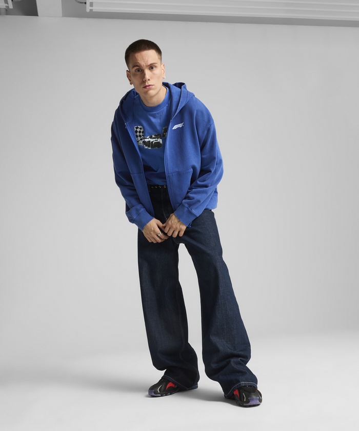 【パーカー・スウェット PUMA FORMULA1 グラフィック フルジップフーディー ブルー】