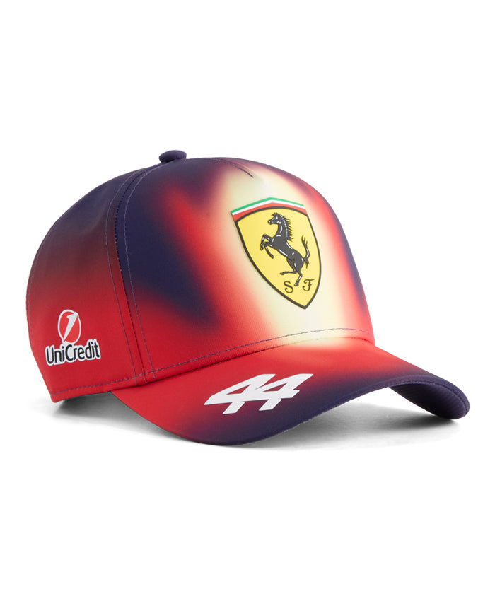 スクーデリア・フェラーリ HP レプリカ 2026 コレクションの新作ベースボールキャップは、ルイス・ハミルトンがFIAフォーミュラ1世界選手権の中国グランプリで着用するモデルを再現したデザインです。