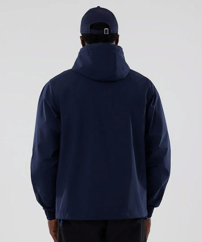 1/4ジップクロージャーとドローコード付きフード、裾にはインナーバンジーコードを採用。防水性・防風性に優れた素材を使用し、天候の変化にも対応できる機能的な仕上がりです。