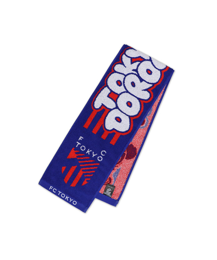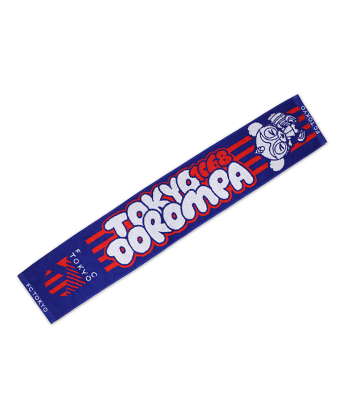 FC東京のマスコット「東京ドロンパ」やクラブエンブレムがデザインされた青赤カラーのタオルマフラーです。
