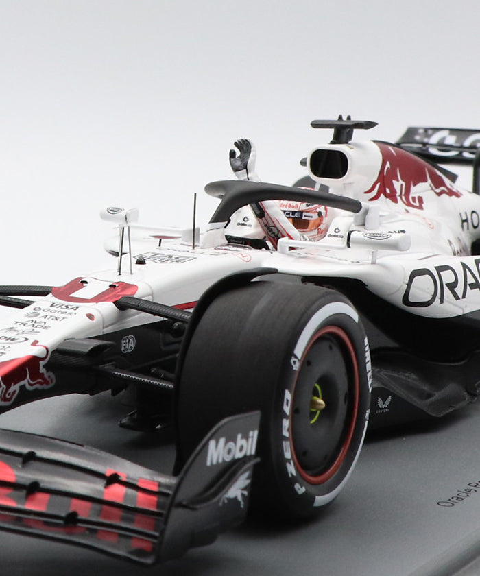 レッドブルとホンダがパートナーを組む最終年となった2025年、その節目の日本GPでフェルスタッペンが圧巻の走りを見せ優勝を飾りました。そのメモリアルなマシンを、1/18スケールならではの迫力と高精度な造形で忠実に再現したモデルです。
