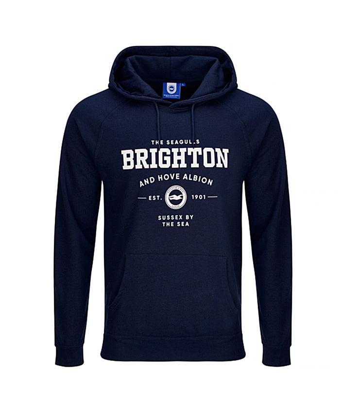 ブライトンのクラブエンブレムやチーム名がデザインされたプルオーバーパーカーです。
