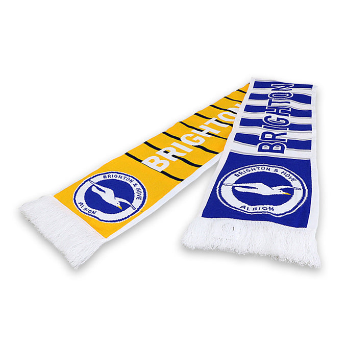 応援グッズの定番アイテム!ブライトンのクラブ名とエンブレムがデザインされたニットマフラーです。