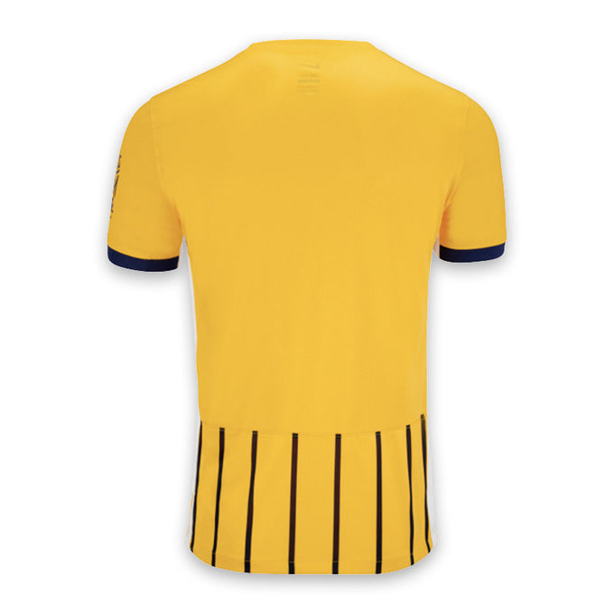 2013/14年のアウェイシャツにインスピレーションを得て、ユニバーシティイエローにネイビーブルーのピンストライプを再現したデザイン。