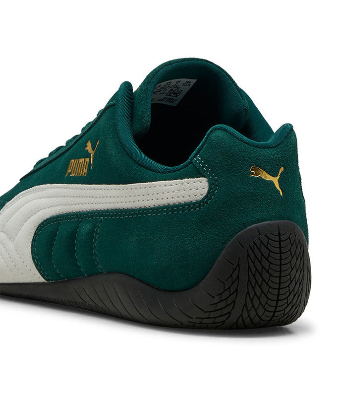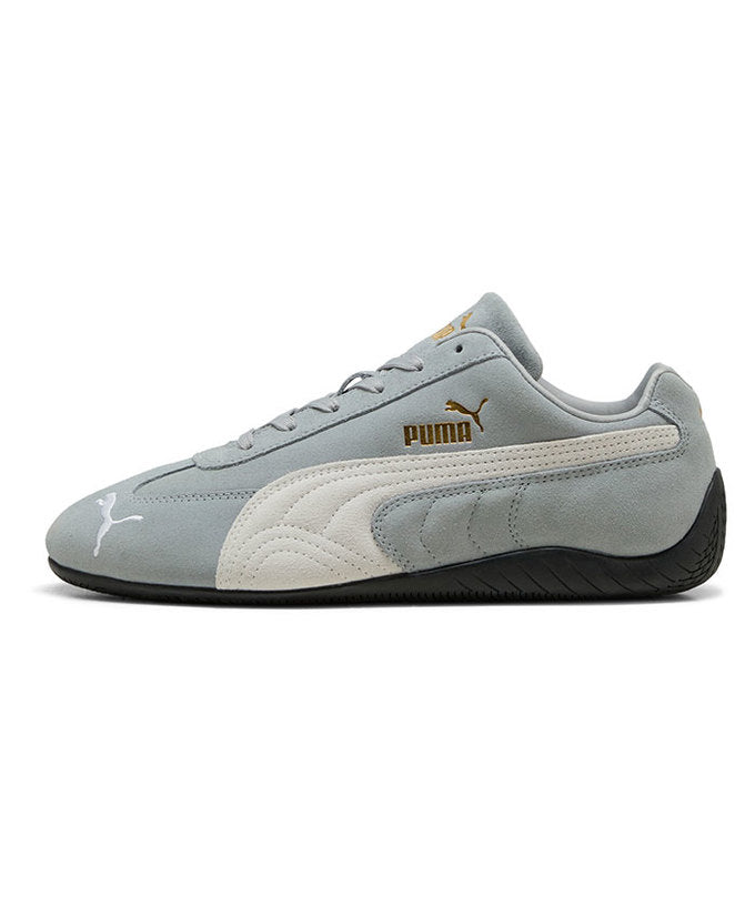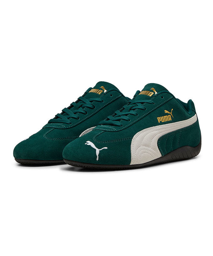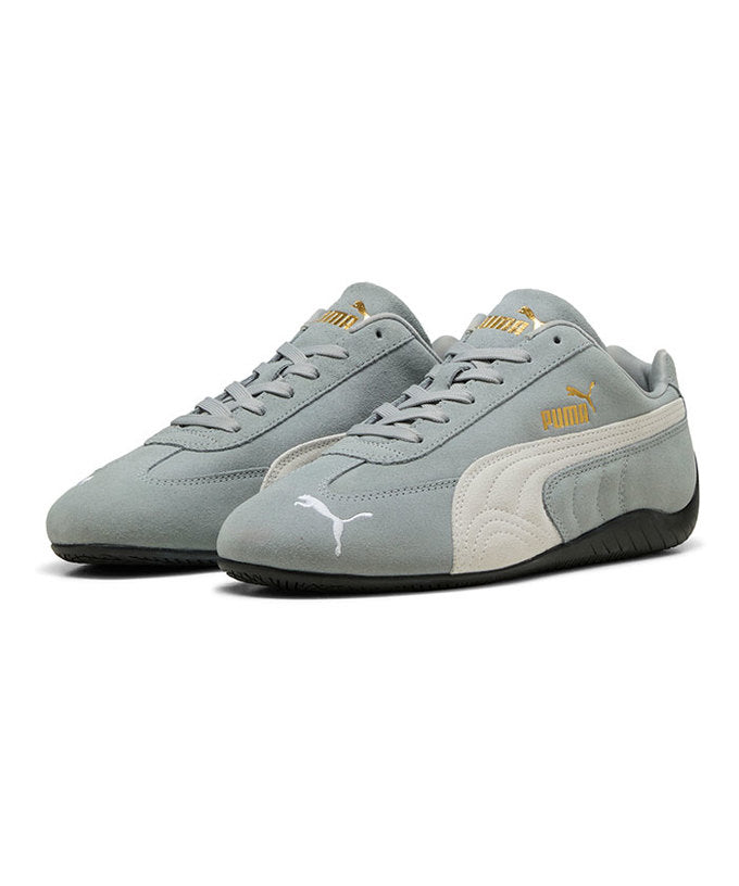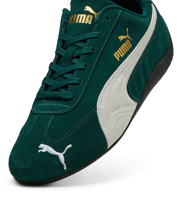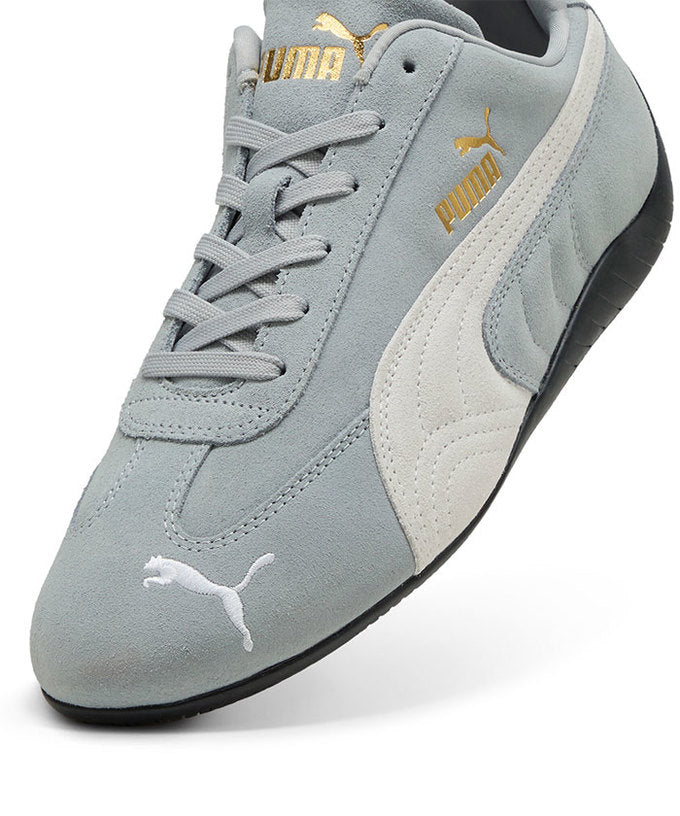 スピードキャットは、1999年に誕生し、80年代から90年代にかけてF1グランプリのドライバーが履いていた耐火レーシングシューズをベースにしたライフスタイルシューズです。レーシングにインスパイアされたなめらかなラインと空気力学に基づいたデザインにより、ファッションやスニーカーカルチャーに衝撃を与えてきました。今回、再びリリースされるスピードキャットOGは、F1レーシングチームを彷彿とさせる豊富なカラー展開とスウェード素材をふんだんに使用した仕上がりとなっています。2000年代初頭のレーシングウェアに敬意を表し、つま先には“プーマキャット”の刺繍が施され、シュータンとフォームストリップの上にはゴールドのロゴがあしらわれています。