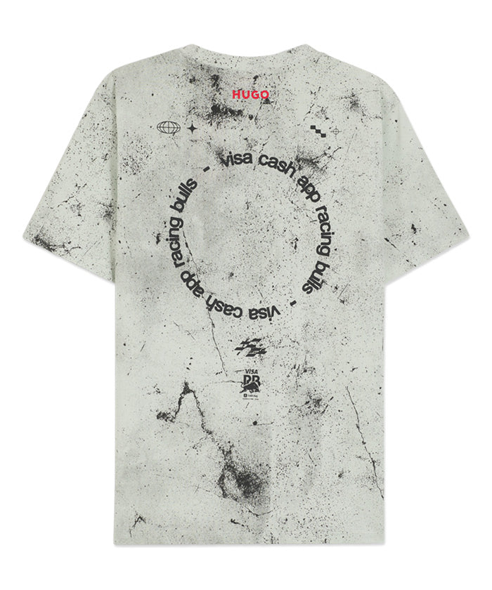 前面には[ VCARB ]プリント、背面にはVisa Cash App Racing Bullsサークルロゴとチームロゴ、さらにHUGOロゴや限定アイコンを配したデザインで、存在感のある仕上がり。クルーネック&ショートスリーブで、快適な着心地を実現します。