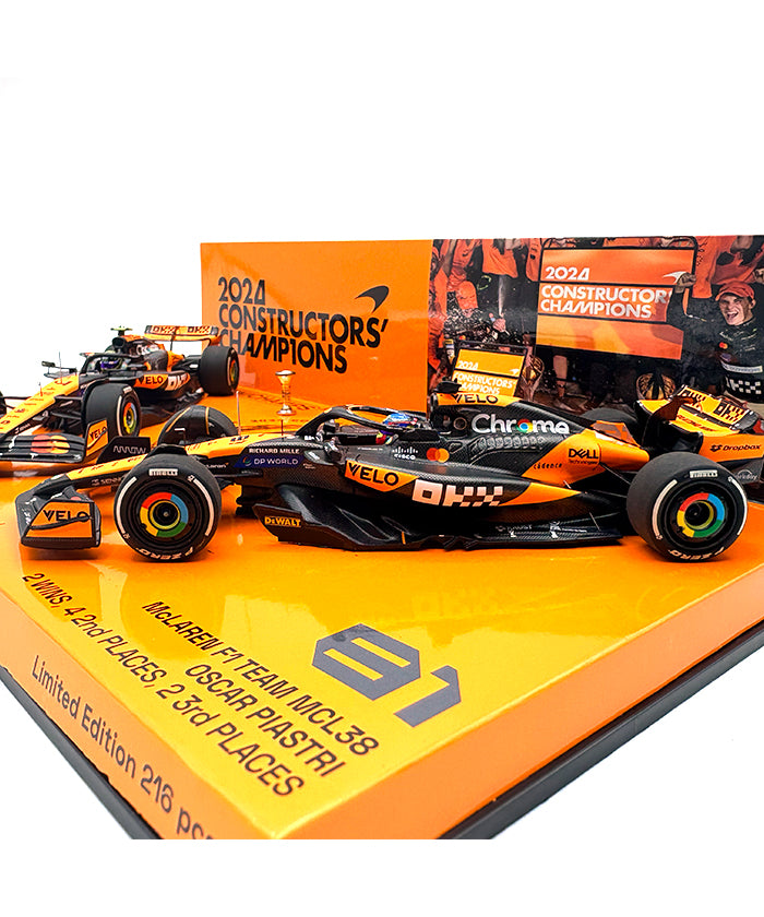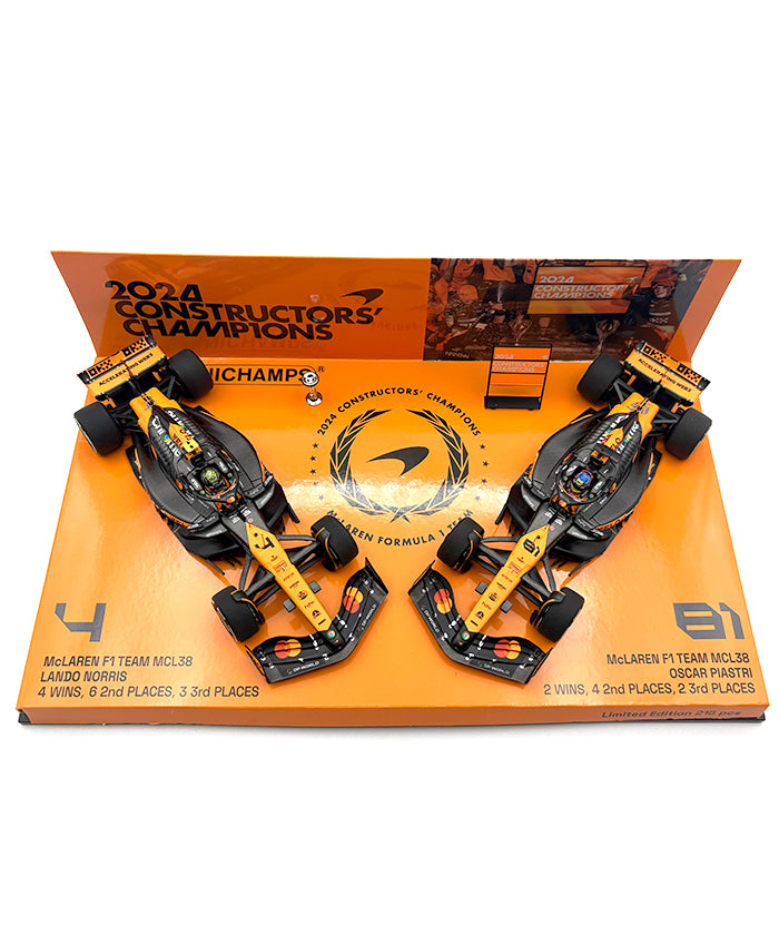 マクラーレン F1チーム MCL38 ランド・ノリス&オスカー・ピアストリ 2024年 コンストラクターズチャンピオン セット by ミニチャンプス 1/43スケール