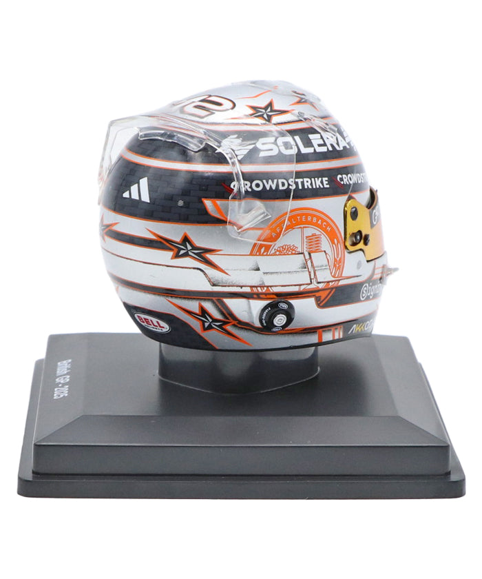 若手ドライバーらしいフレッシュで力強いテーマを感じさせるカラーリングや、スポンサー・チームロゴの細かな配置、ヘルメットの曲面に沿ったグラフィック処理は、スパークならではの高い造形技術が光るポイント。1/5スケールとは思えない情報量で、ディスプレイした際の存在感も抜群です。