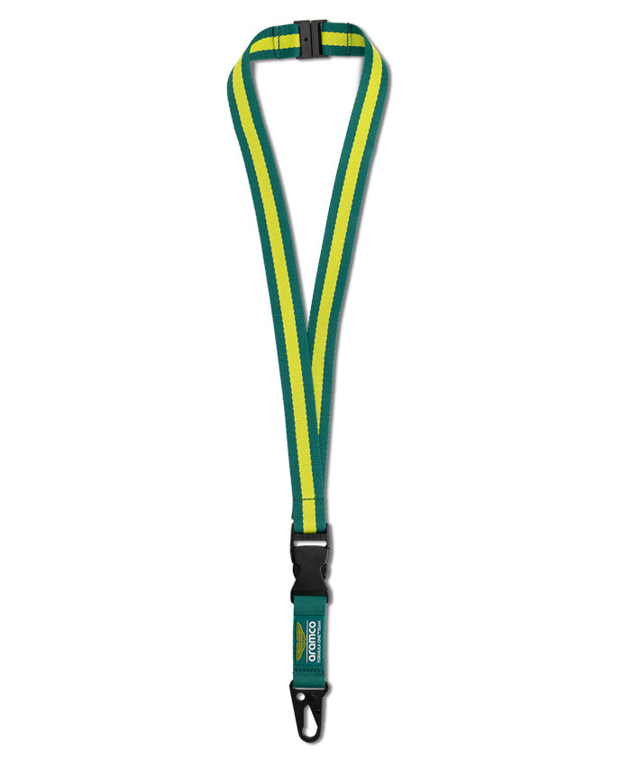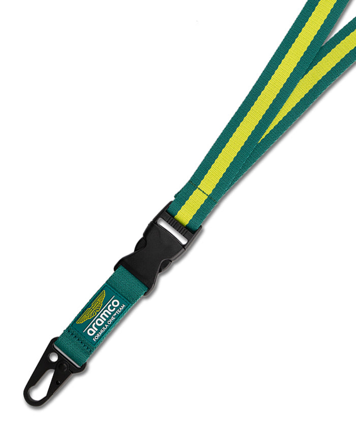 Aston Martin F1 Teamのアクセサリーコレクションに、公式チームランヤードをプラス。チームをイメージしたブランディングを施し、スタイルと実用性を兼ね備えたアイテムです。取り外し可能なカラビナ付きキーリング仕様で、鍵やパスケースの装着もスムーズ。日常使いはもちろん、レース観戦時にも活躍します。