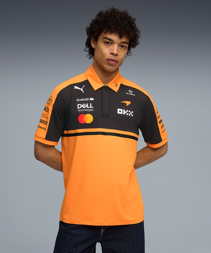 史上初のコラボレーションによる、PUMA × マクラーレン・レーシング レプリカコレクションのポロシャツ。