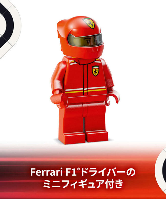 ミニフィギュア1体付属 – Ferrari F1チームのレーシングスーツとヘルメットをかぶったドライバーのミニフィギュアがレースごっこで大活躍