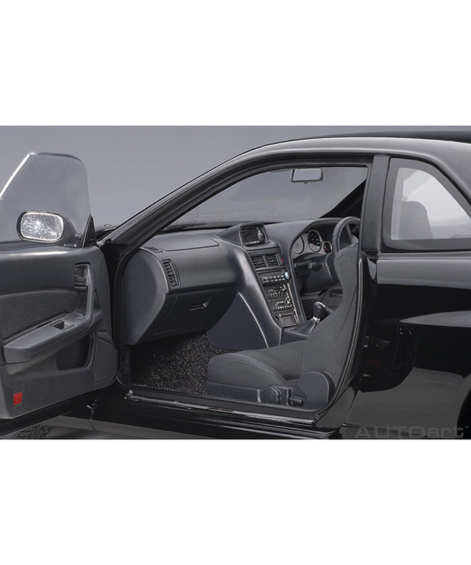 1999年デビューのR34型『日産 スカイライン GT-R』は、R32型から始まる第二世代GT-R」の完成形、そして最後のスカイラインGT-R」として今なお絶大な人気を誇ります。R32時代から熟成が進んだ最高出力280psのRB26DETT型」2.6リッター直6DOHCツインターボエンジンと4WDシステムアテーサE-TS」を搭載。また、車体裏のディフューザーで超高速域での安定性を高め、国産量産車として本格的空力ボデイ採用の先駆けともなりました。では、今回新たに3Dスキャニングなどの最新技術を駆使して、高性能仕様の『Vスペック II』をモデル化。今からちょうど20年前の初登場以来、何度もモデル化されてきた屈指の人気アイテムを一から見直し新規金型から制作しました。デジタル化による正確なボディ形状はもちろん、伝統の直6エンジン、ハイバック式バケットシートやステアリング、専用の鍛造ホイール&タイヤとブレンボ製ブレーキなどの細部までリアルに再現。コンポジットダイキャストモデルの利点を活かし、ギリギリのチリ合わせを実現したドアやボンネットなど、各部の開閉もお楽しみ頂けます。