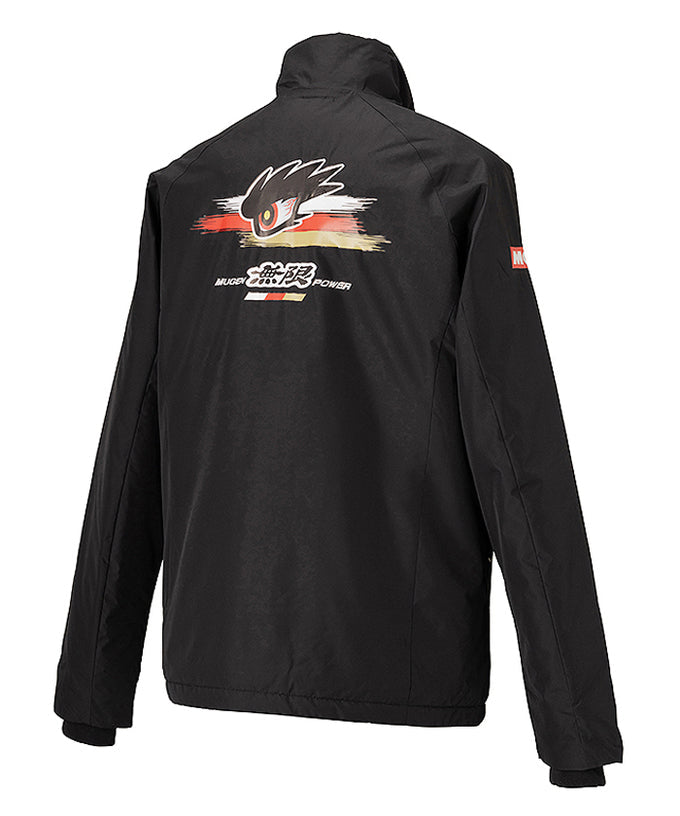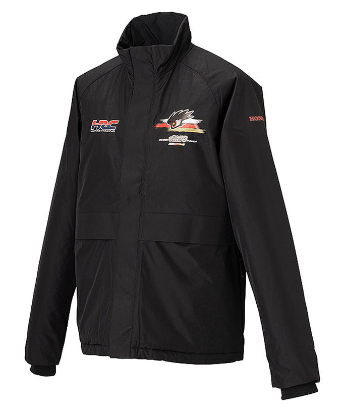 チームが着用するウエアーと同デザインの ショートコート。 無限のファイティングスピリットの象徴である眼力 / コマンダーアイ」と3色帯」の組み合わせをメインに HONDA」、HRC」、MOTUL」の ロゴをプリントしたモータースポーツテイスト溢れるデザインとなっています。