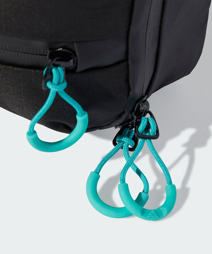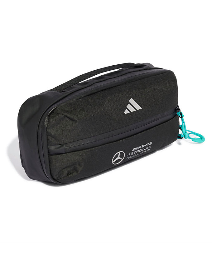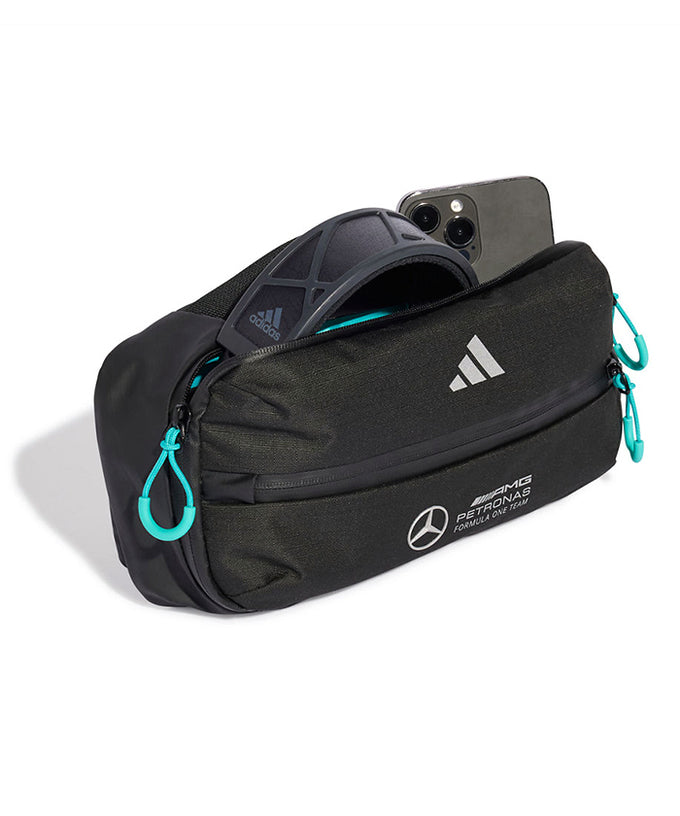 Mercedes-AMG PETRONAS F1チームのファンであることをアピールできる、adidas Motorsportsが贈るスリングパック。好みのフィット感に調節できるストラップに付いたバックルを締めれば、邪魔にならないように身体に装着できる。チームカラーとチームロゴで統一した、オフィシャルデザインのバッグ。
