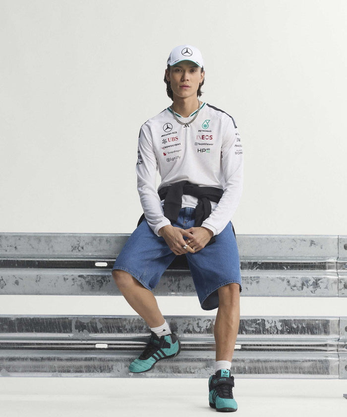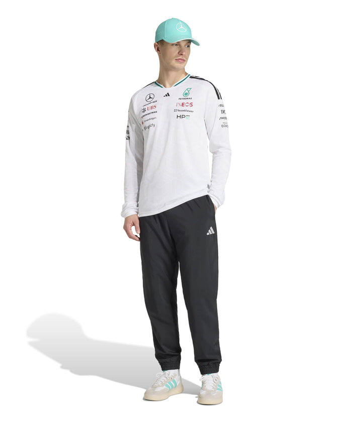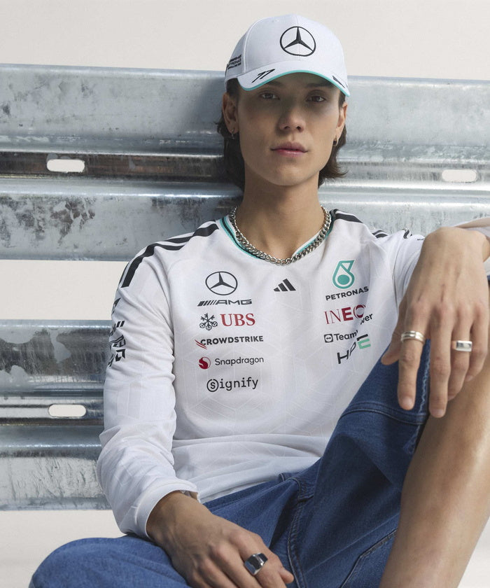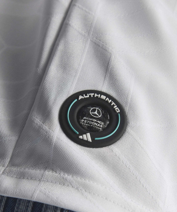 フロントにはアイコニックなadidasロゴと、立体感のあるヒートトランスファープリントを採用。adidasの品質とスタイルへのこだわりを体現しています。さらに、Mercedes-AMG Petronasのブランディングが、モータースポーツファンにふさわしい上質感をプラス。