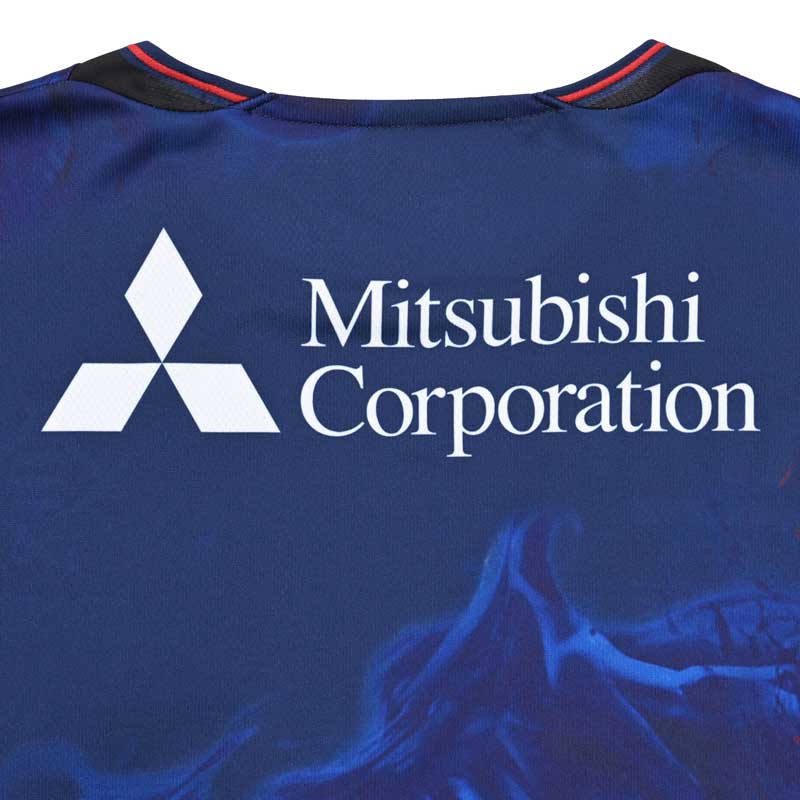 衿の切替には、クラブカラーの青赤のラインがデザインされ、新鮮な表現となっています。