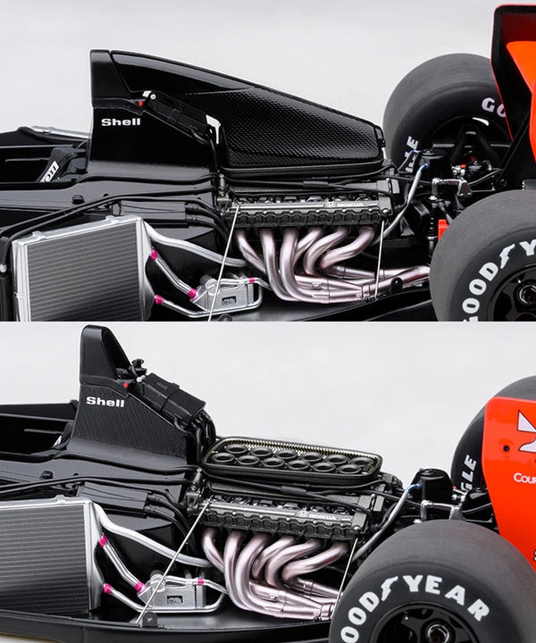 『マクラーレン ホンダ MP4/6』は、名門F1チーム「マクラーレン」が史上初めてカーボン製モノコックを採用したMP4シリーズの最新シャシーに、新型V12エンジン「ホンダ RA121E」を搭載。
