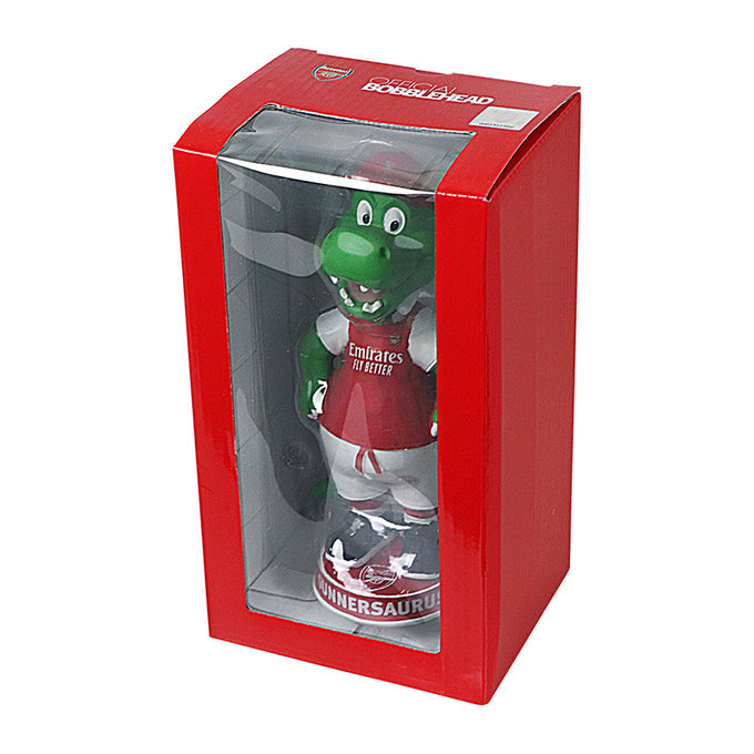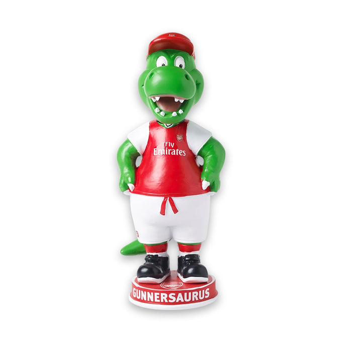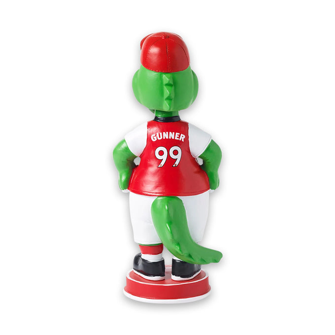 アーセナルのマスコット、ガンナーザウルスがホームユニフォームを身にまとった首振り人形です。