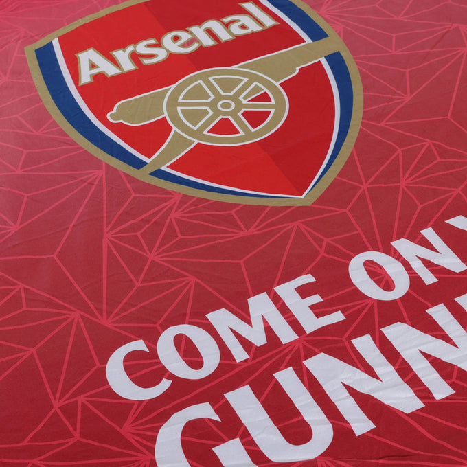 アーセナルのエンブレムとスローガンがデザインされた、シェルパ素材のブランケットです。