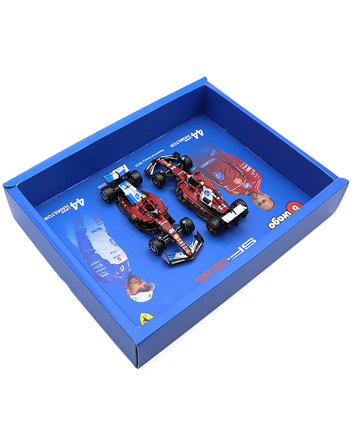 セットにはフェラーリ伝統のレッドが輝くシーズンカー、そしてマイアミの華やかな舞台に合わせた特別リバリーの2台を収録。異なるデザインを一度に楽しめるため、ハミルトンファンはもちろん、フェラーリコレクターにとっても満足度の高い組み合わせとなっています。