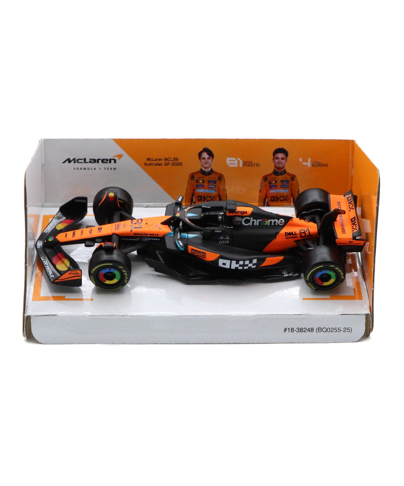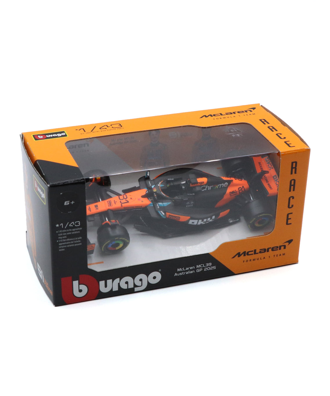 2025年オーストラリアGPでオスカー・ピアストリが駆ったMCL39を、ブラゴが1/43スケールで手に取りやすいモデルに仕上げました。ピアストリの母国GP仕様ならではの特別な雰囲気をコンパクトなサイズで楽しめる一台です。