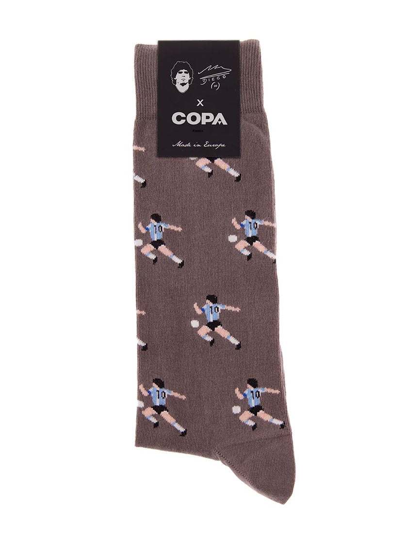 ディエゴ・マラドーナの象徴“アルゼンチン10番”をドット絵タッチで総柄デザインに落とし込んだ、COPA公式コレクションのソックス。