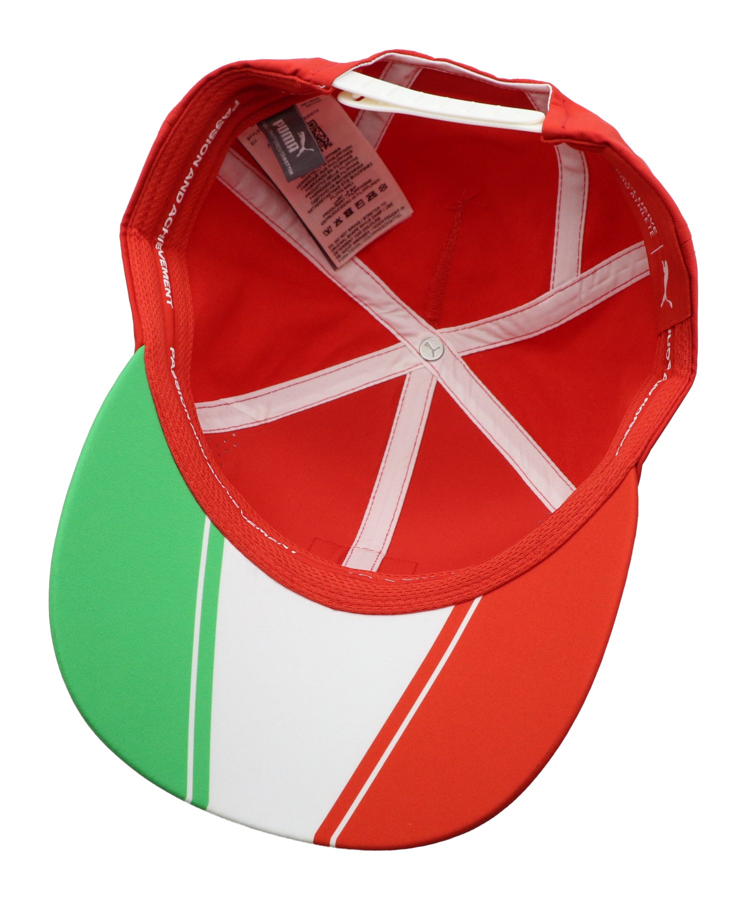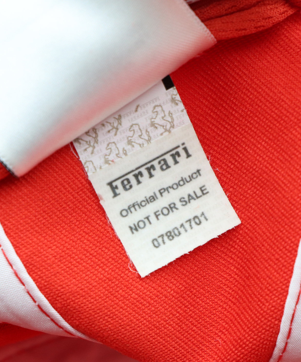 キャップ内部には、支給品であることを証明する「exclusive pro athlete」タグ、そしてフェラーリ公式の「NOT FOR SALE」タグを搭載。これらは一般流通品には一切存在しない特別仕様で、チーム支給品ならではの高いコレクション価値を示すポイントです。