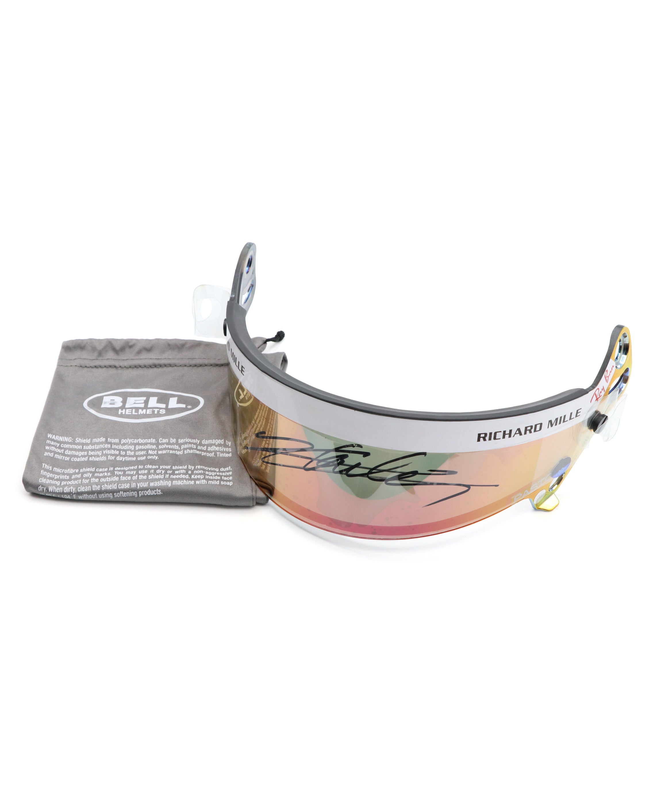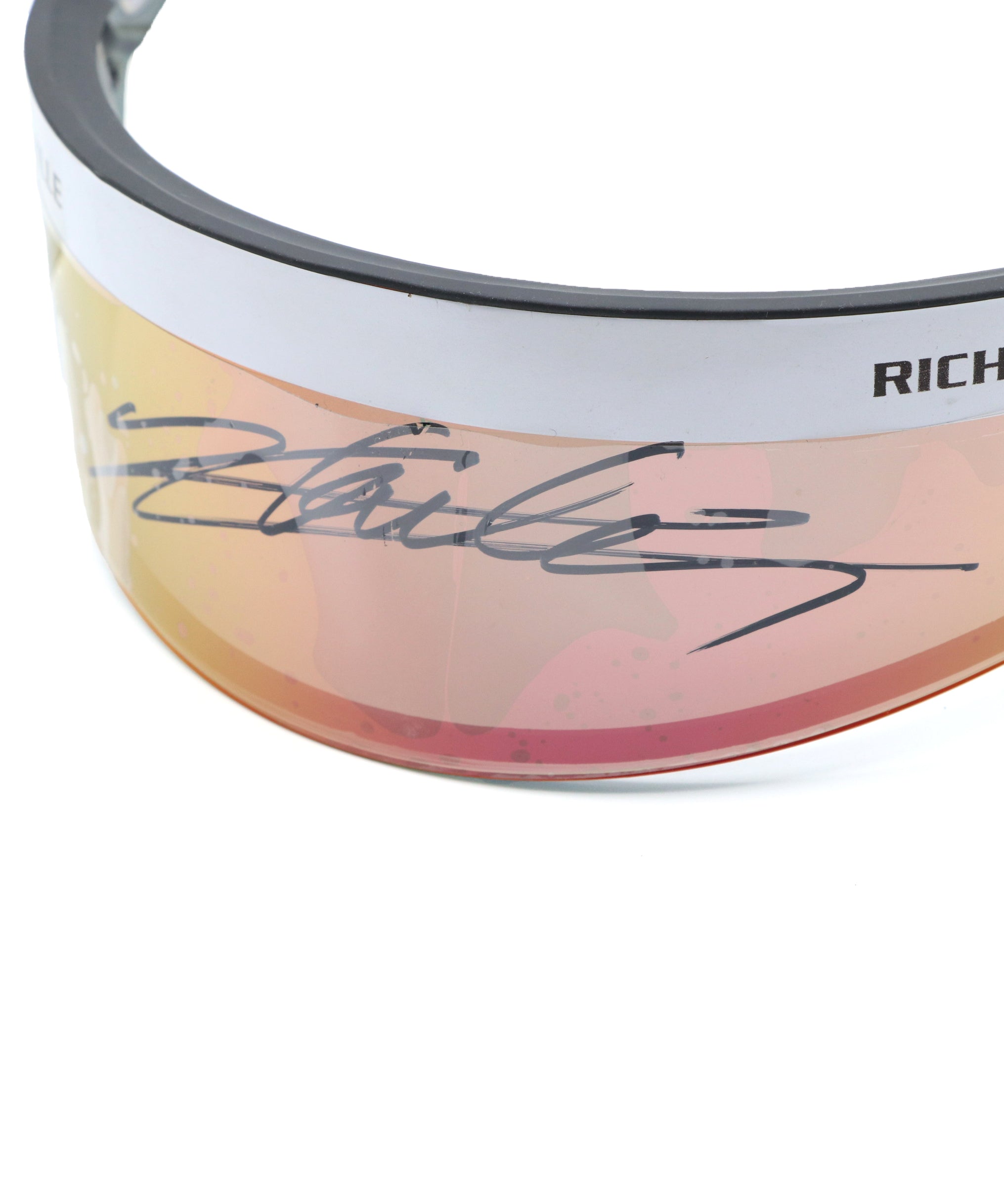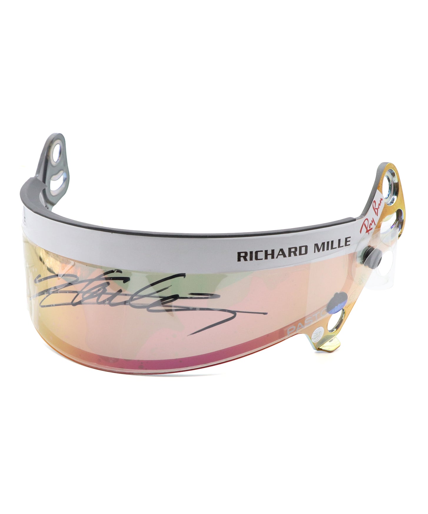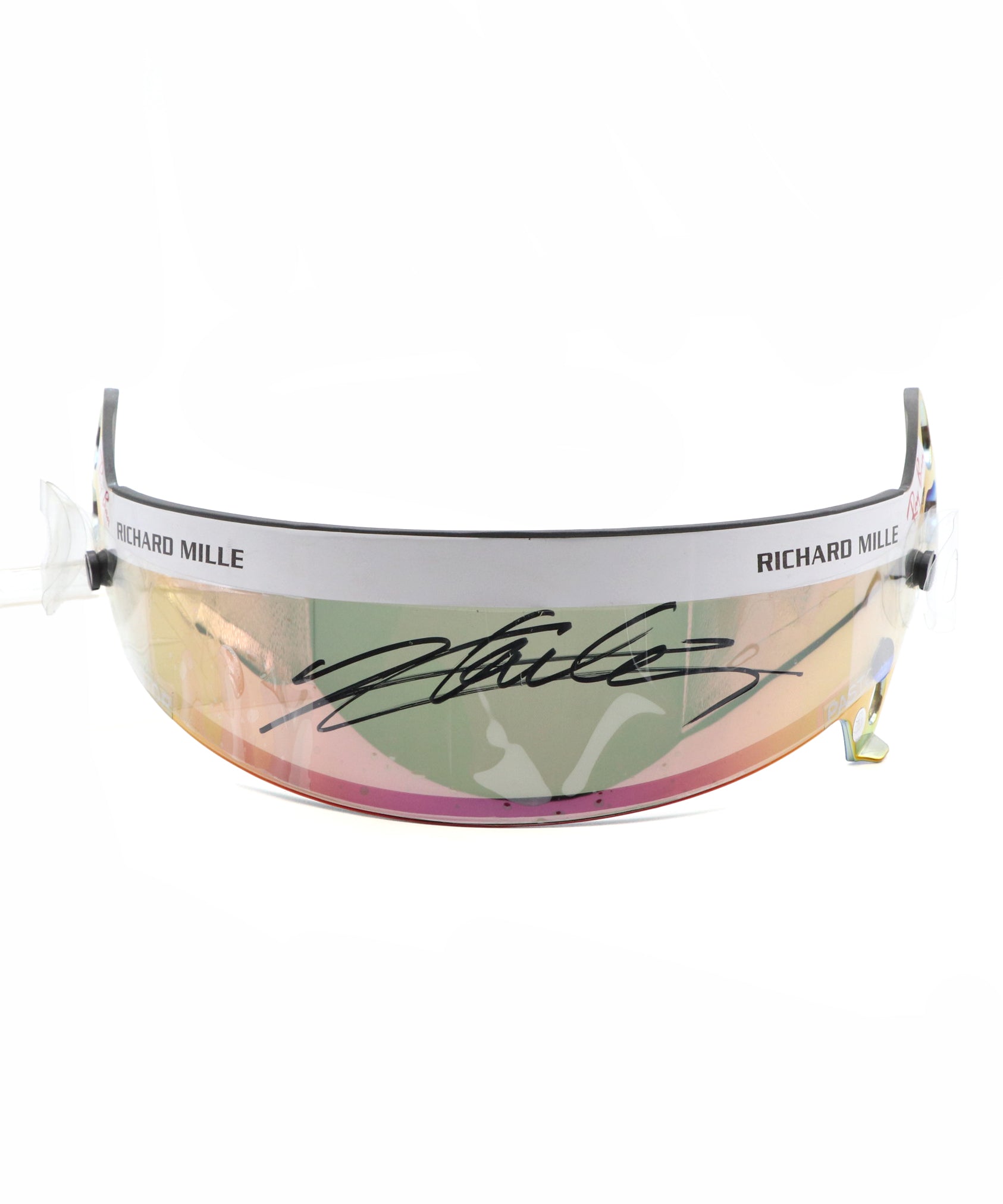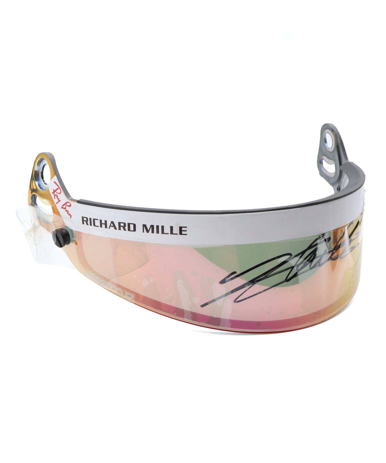本商品は、2022年シーズンにスクーデリア・フェラーリで戦ったシャルル・ルクレール選手仕様のヘルメット用バイザーに、本人直筆のサインが入った大変希少な一品。フェラーリのエースドライバーとしてタイトル争いを繰り広げた、印象的な2022年シーズンを象徴するメモリアルアイテムです。