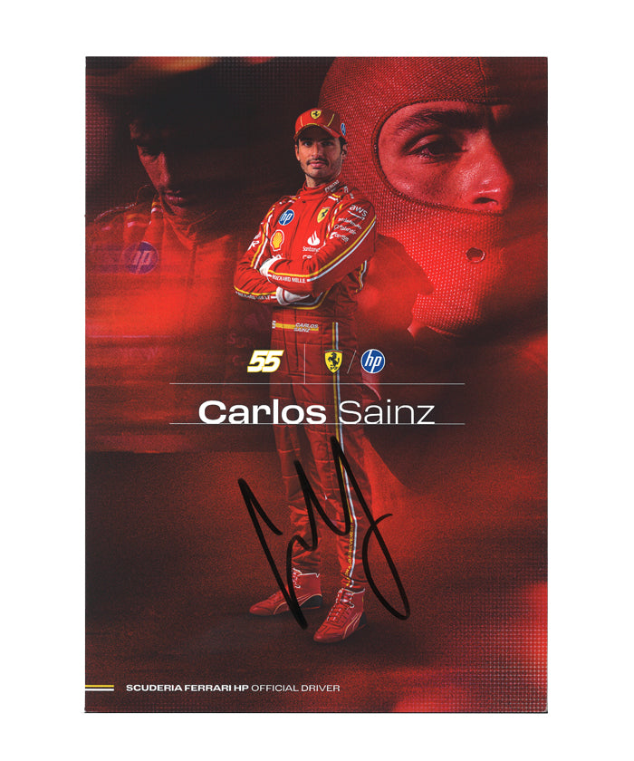 本商品は、スクーデリア・フェラーリ HP チームが2024年シーズンに関係者向けとして配布した非売品ドライバーズカードに、カルロス・サインツ選手本人の直筆サインが入った特別なアイテム。一般販売は行われていないため、入手難易度の高い公式カードとなっています。