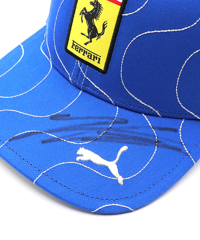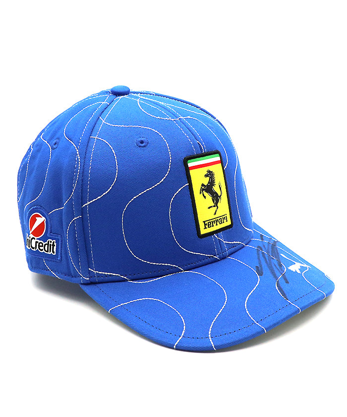 チーム支給品の証である「load perceval」タグ、そしてフェラーリ公認の「NOT FOR SALE」タグも付属し、公式支給アイテムであることを証明。一般流通のない支給品キャップに直筆サインが入ることで、メモラビリアとしての希少性は非常に高いものとなっています。