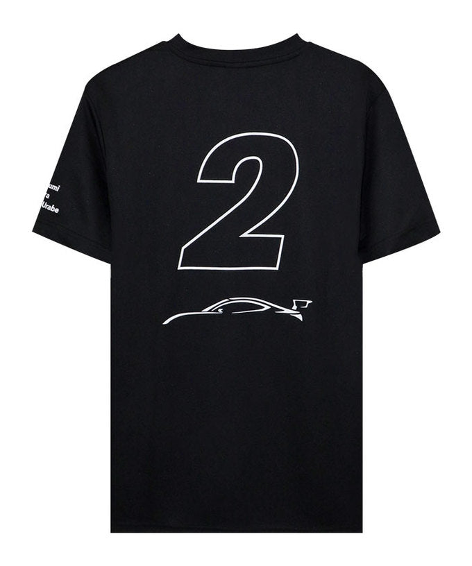 前面にチームロゴ、背面にマシンシルエット、左袖にドライバー名が施されています。