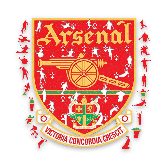 アーセナルの旧エンブレムが型取られています。人型のピースを並べて遊ぶこともできます。