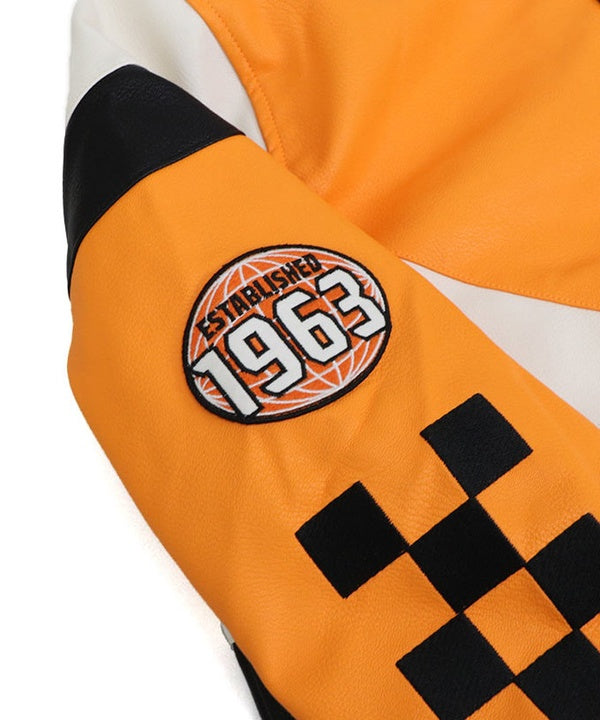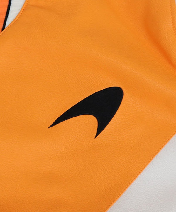 しなやかで光沢感のあるポリエステル素材を使用し、レザーライクな高級感を演出したカジュアルなスタジャンタイプのジャケット。 マクラーレン F1チームのイメージカラーであるオレンジを基調としたデザインで、チームスピリットをさりげなくアピールできます。 リブ仕様の袖口・裾やスナップボタン仕様のフロントなど、スタジャンならではのクラシカルなディテールもポイント。 レース観戦はもちろん、タウンユースや普段のコーディネートにも取り入れやすいスタイリッシュな一枚です。