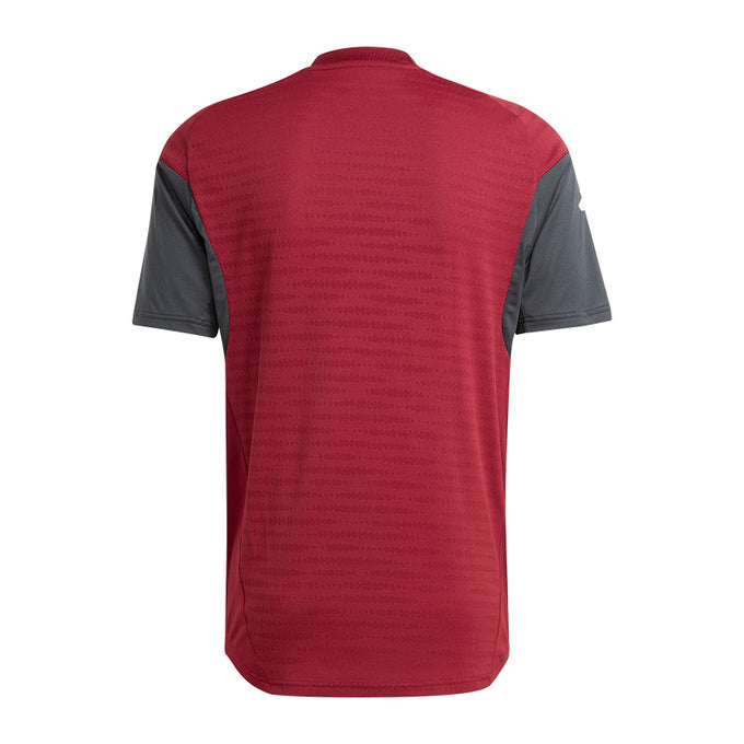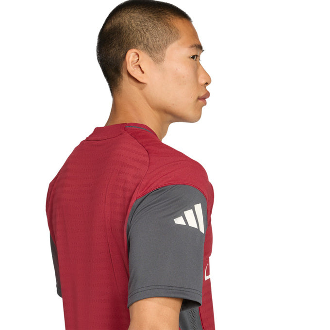 アーセナル 25/26 サードユニフォームのバーガンディカラーを取り入れた半袖シャツ。