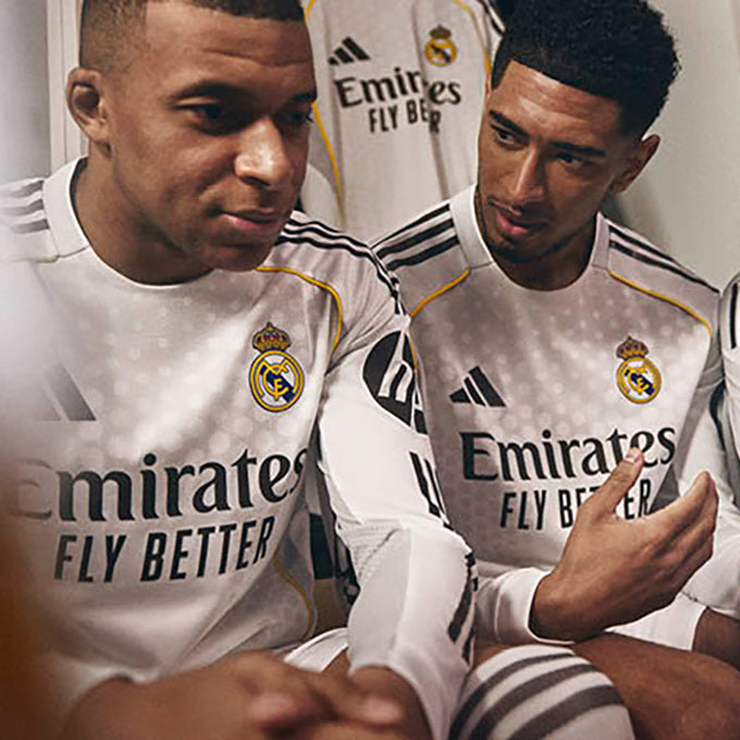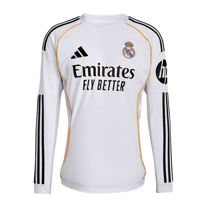 レアル・マドリードの2025/26シーズンモデル ホーム長袖レプリカユニフォーム。