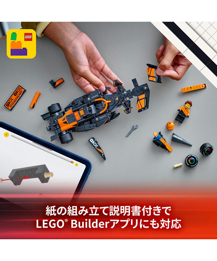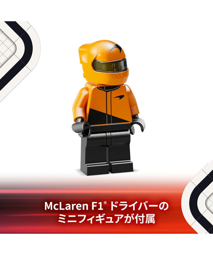 ミニフィギュア1体付属 – McLaren F1チームのレーシングスーツとヘルメットをかぶったドライバーのミニフィギュアがレースごっこで大活躍