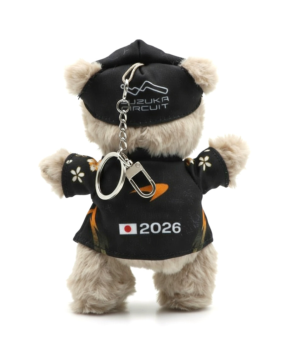 日本限定のキャップとTシャツを着用したベアーには、チームロゴをはじめ、日本GP限定の和柄グラフィック、日本国旗、「2026」の年号をデザイン。