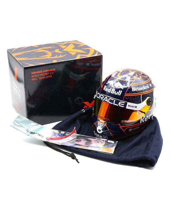 MV別注 マックス・フェルスタッペン 2025年 オレンジ ライオン オラクル レッドブル レーシング ヘルメット by シューベルト 1/2スケール