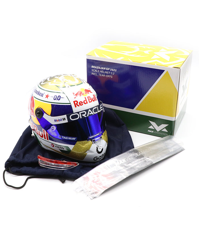 マックス・フェルスタッペン 別注 2025年 ブラジルGP オラクル レッドブルレーシング ヘルメット by シューベルト 1/2スケール