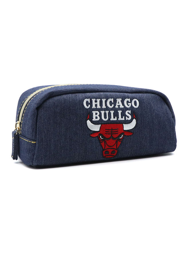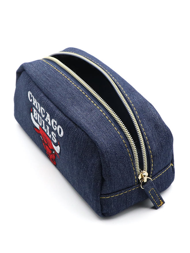 デニム生地のカジュアルな質感に、シカゴ・ブルズの存在感ある刺繍ロゴを組み合わせた角型ポーチ。