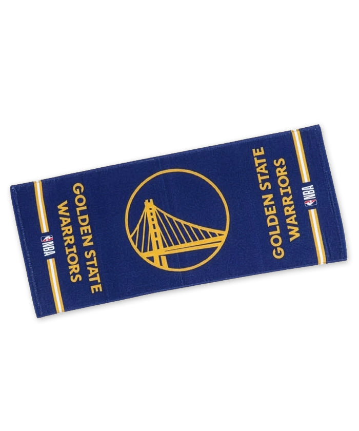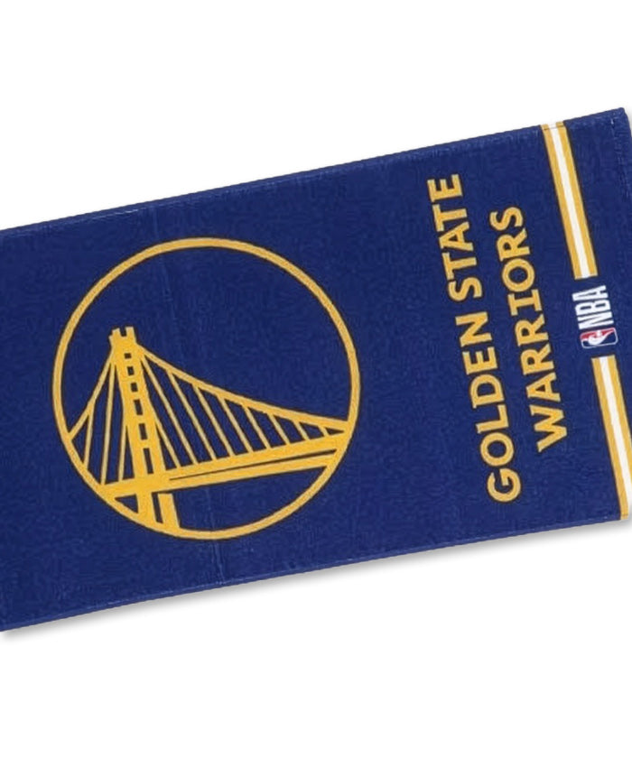 ゴールデンステイト・ウォーリアーズのチームロゴを大きく配置した、存在感抜群のオフィシャルフェイスタオル。