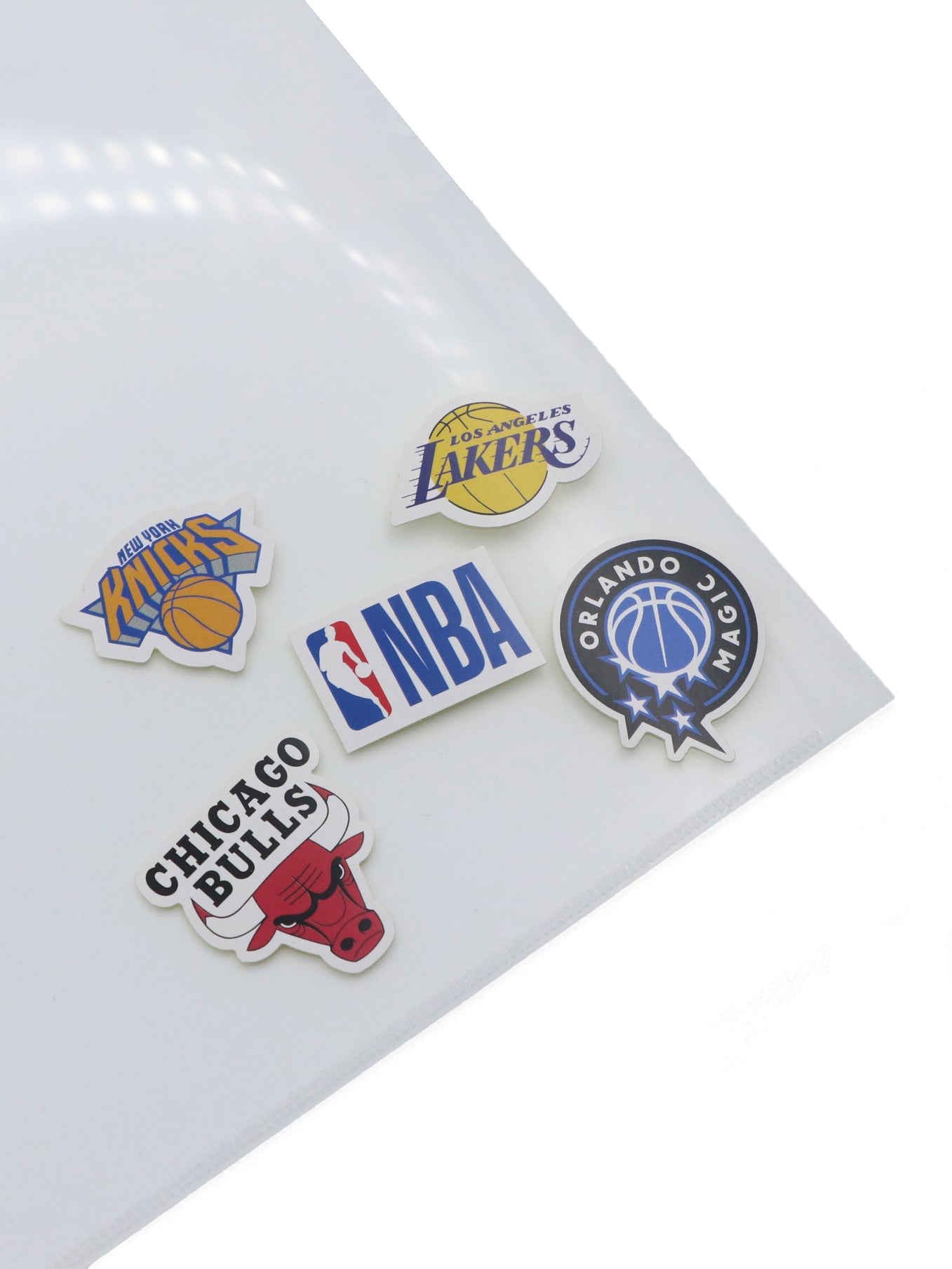シカゴ・ブルズ、レイカーズ、ニックス、マジックなど、ファンにはおなじみのチームロゴを中心に、NBAロゴも含めた豪華ラインナップです。