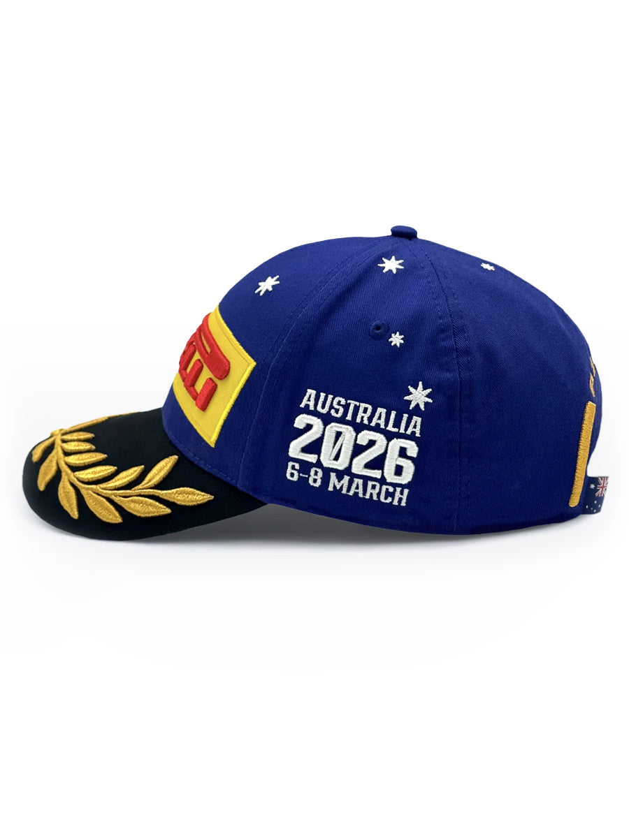 2026年のFormula 1®シーズン開幕戦、オーストラリアグランプリの表彰式でドライバーが着用する公式ポディウムキャップ。メルボルンのアルバート・パーク・サーキットで行われるポディウムセレモニーで、勝利したドライバーが初めて表彰台の頂点に立ち、チャンピオンシップへの戦いをスタートさせる瞬間を象徴する特別なモデルです。