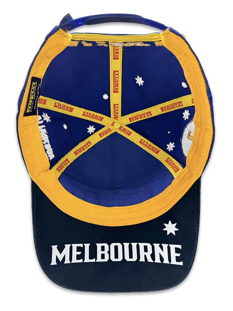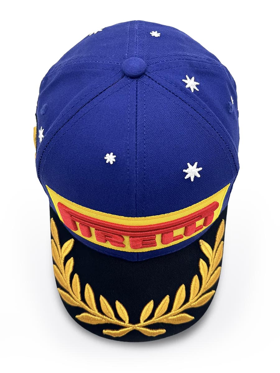 ピレリの厳格な品質基準のもと製作され、キャップ全体に精密な刺繍を施しています。フロントには象徴的なPirelliロゴ、メルボルン開催を記念したレース限定ディテール、さらにメタリックゴールドの糸で表現したチャンピオンシップ・ローレル刺繍を配置。構造的なコットンツイル生地を採用することで、耐久性と美しいフォルム、そして刺繍の高い表現力を実現し、Formula 1®公式ポディウムにふさわしいクオリティに仕上げられています。