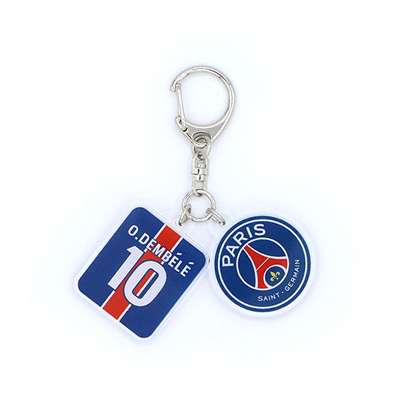パリ サンジェルマンのクラブエンブレムと選手のネーム&ナンバーチャームが付いたアクリルキーホルダーです。