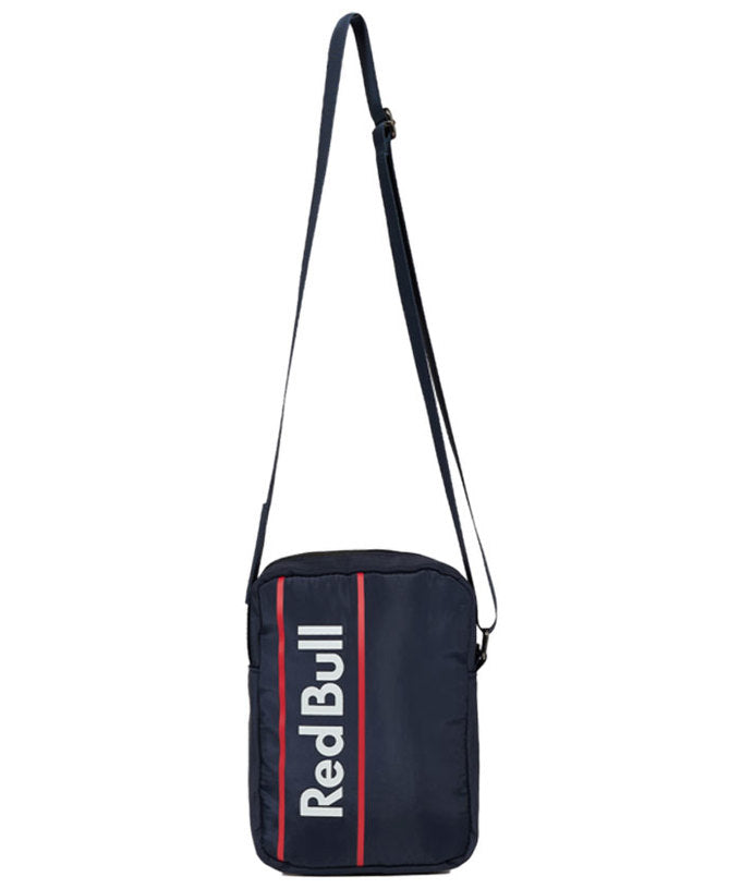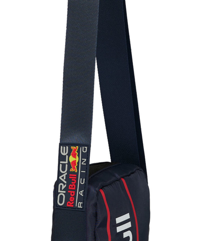 ネイビーカラーの本体に、フロントには大きく“Red Bull”ロゴを、ショルダーストラップには“ORACLE Red Bull RACING”のチームロゴをあしらい、視認性とファンアイデンティティを両立したデザインに仕上げられています。