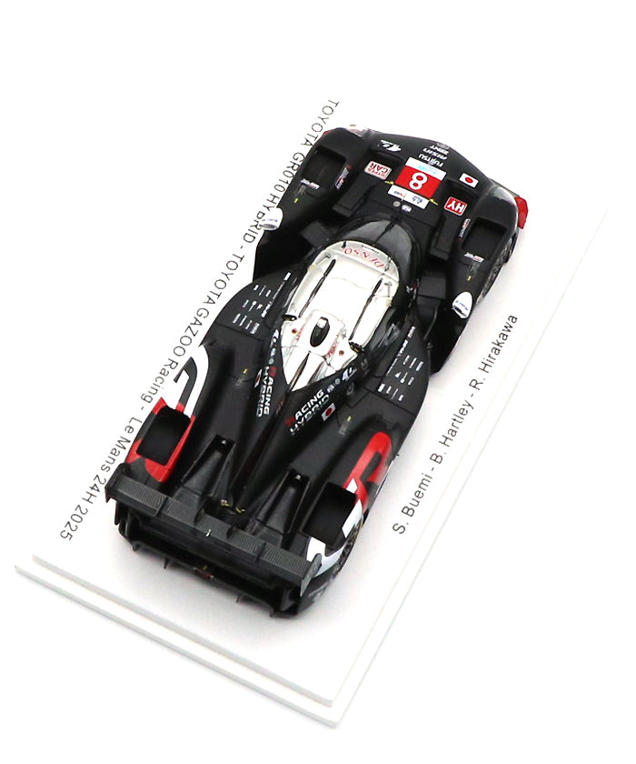 トヨタGAZOO RACINGが誇るハイパーカー、GR010 ハイブリッドのNo.8を再現したモデル。セバスチャン・ブエミ、ブレンドン・ハートレー、平川亮の3名がドライブした、2025年ル・マン24時間レース仕様です。
