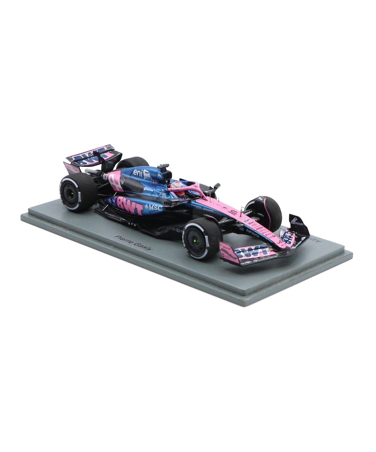 A525の特徴である細かな空力パーツ、躍動感あるノーズ周りの造形、そして鮮やかなBWTピンクを基調としたアルピーヌ独自のカラーリングを、1/43とは思えない精密さで立体化。スポンサーロゴや細部のディテールまで丁寧に再現され、実車の存在感そのままに手のひらへ収まるクオリティとなっています。