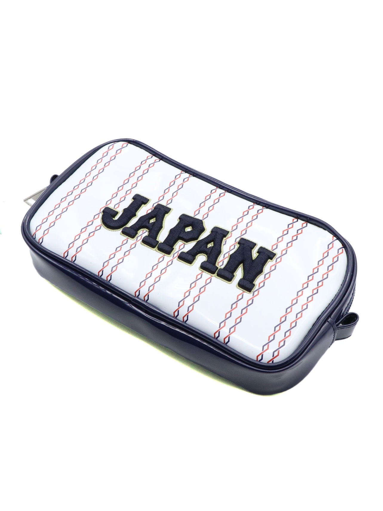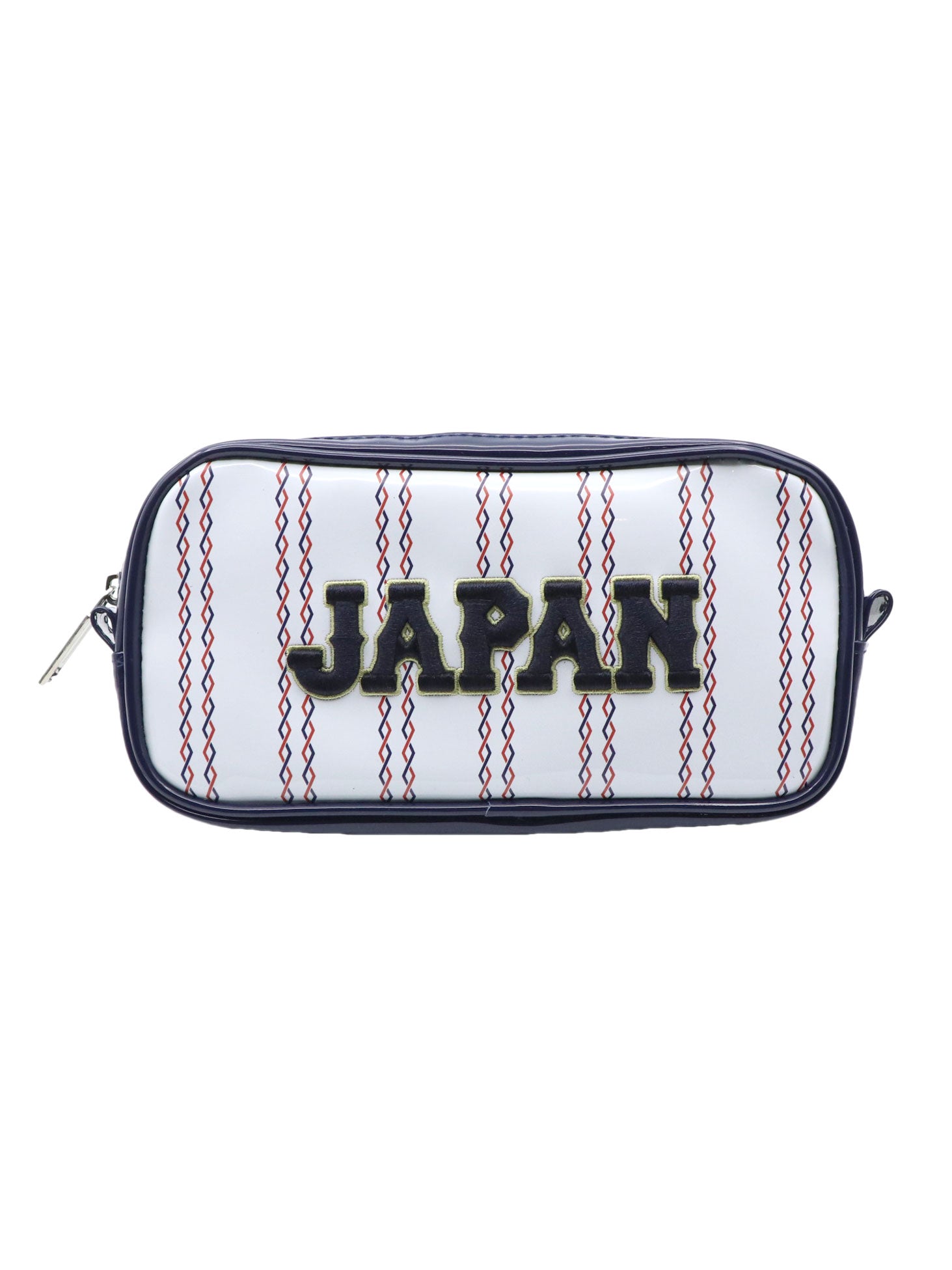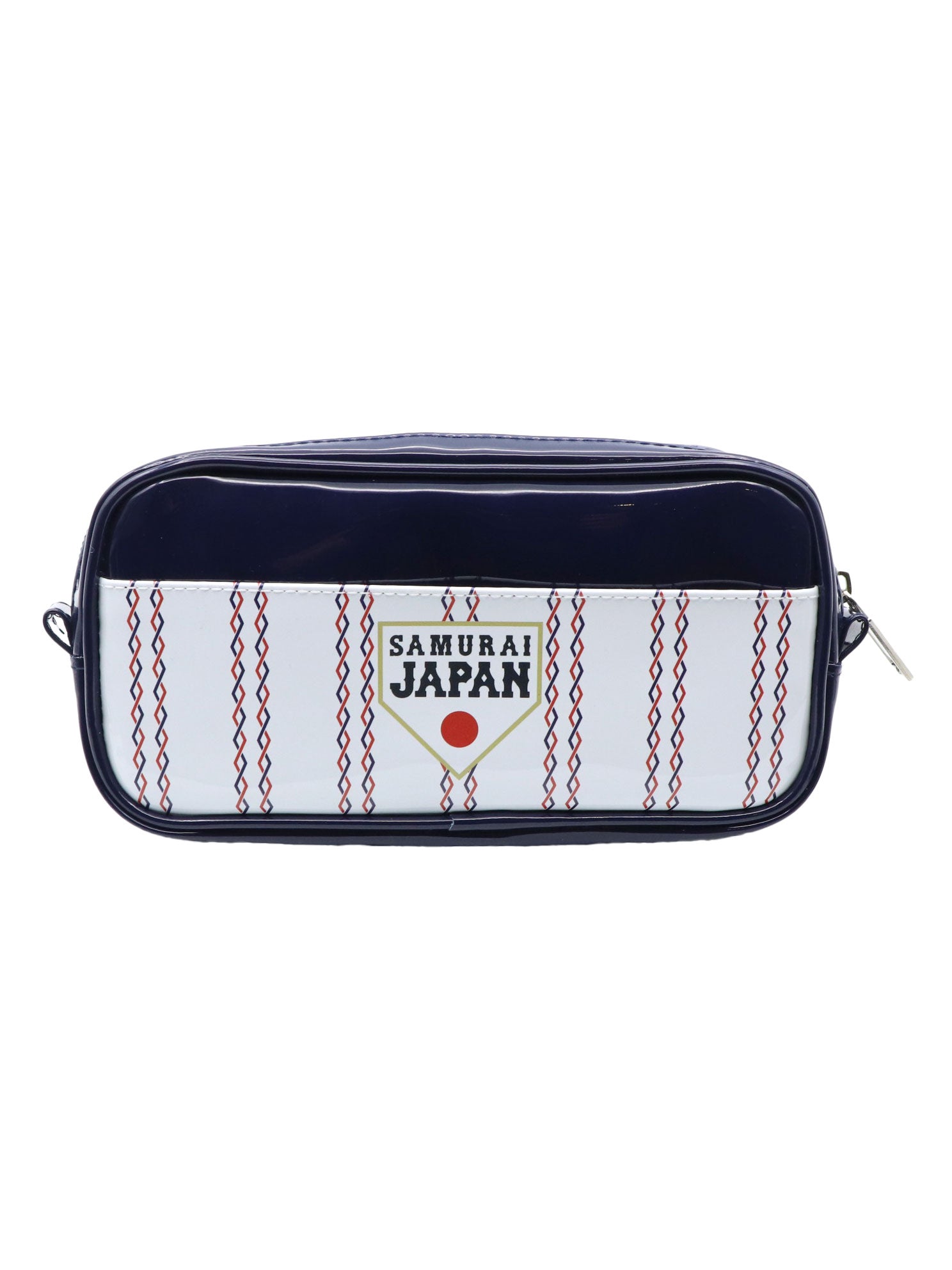 侍ジャパンのユニフォームデザインをモチーフにした、存在感のあるストライプ柄ペンポーチ。