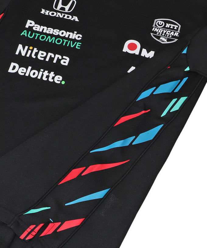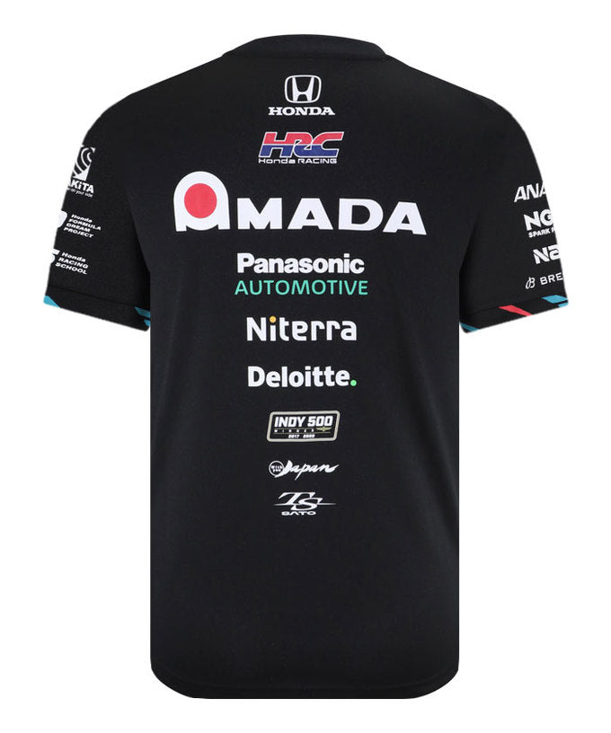 2025年シーズンレイホール・レターマン・ラニガン・レーシング(RLL)より、 第109回インディアナポリス500に参戦する佐藤琢磨のドライバーズTシャツ。 75号車のスポンサーのAMADA、Panasonic Automotive Systems 、Niterra、Deloitte、HONDA、HRCなど佐藤琢磨をサポートしているスポンサー企業のロゴが入っています。また、マシンカラーに用いられる、赤、緑、青の3色を踏襲したデザインとなります。